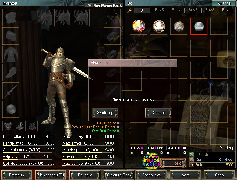1) Prepare equipment(enchant level 15) you want to grade-up in inventory and grade-up item.